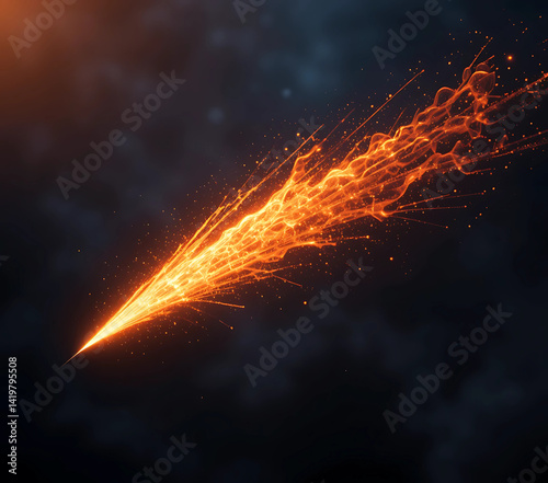 "A fiery comet streaking through the air, tail blazing behind it. Transparent background, glowing with intense heat and sparks.