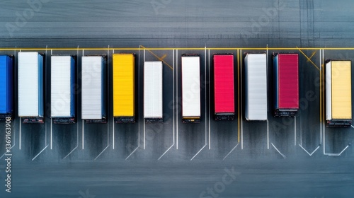 A fleet of cargo trucks lined up in a logistics yard for scheduled deliveries.