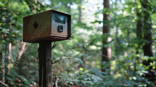 A forest camera trap with AI software identifying species and cataloging their movements.
