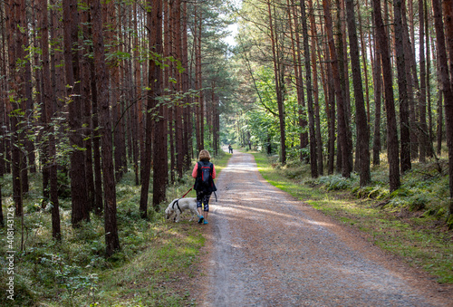 A forest road among the fragrances of pines on the Vistula Spit between Jantar and Stegna. Poland