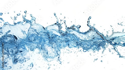 A freeze frame of pure blue water splashing set against a crisp white canvas AI generated illustration