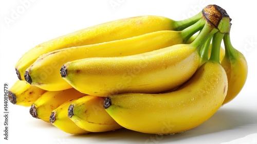 a fresh bunch of bright yellow bananas on a white isolated background, sweet and healthy design
