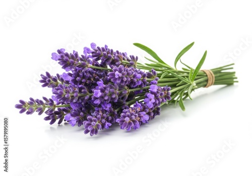 lavandula, purple, flower, herb, fragrant, aromatic, botanical, nature, plant, floral, garden, fresh, bunch, bouquet, tied, twine, isolated, white, background, studio, shot, closeup, macro, wellness, spa, aromatherapy, mediterranean, provence, summer, bloom, flower petals, stem, green