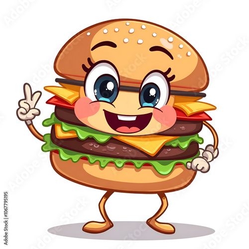 burger, character, illustration, design, satisfaction, expressive, cheer, iconic, unique, playful, animation, enjoyment, friendship, laughter, smile, whimsical, vegetable, delight, optical, fun, wholesome, snack, happy, deliciously, cartoon, art, fast food, cute, tasty, cheerful, creative, colourful, cheese, adventure, food, delicious, jovial, merriment