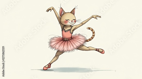cat, ballerina, illustration, outfit, full-length, whimsical, playful, colours, grace, ballet, animal, costume, dance, character, cute, art, concept, visual, fun, creativity, performance, felino, personality, elegance, movement, fantasy, humor, style, expression, joy, charme, closeup, closeup, vector, cartoon, kitten, pet, funny, design