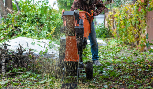 A gardener trims bushes and branches. Selective focus.