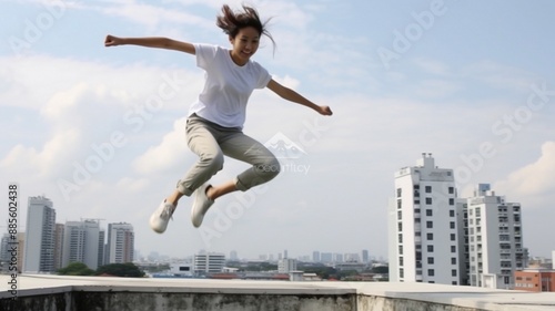 photo, one person, cut-out, teenage, jumping, happiness, motion, vertical, people, vitality, smiling, excitement, female, joy, lifestyle, horizontal, girl, carefree, dancing, enjoyment, relaxation, ecstatic, indoor, playful, kicking, balance, flexibility, woman, sport, stunt