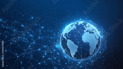 A globe of the Earth, showing continents, with a network of lines connecting points, suggesting global connections.
