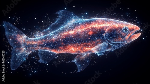 fish, digital, glowing, particle, abstract, technology, futuristic, modern, art, design, illustration, graphic, science, nature, animal, sea, ocean, aquatic, wildlife, underwater, life, water, sparkle, shimmer, bright, dark, background, three-dimensional, render, computer, generated, artistic, creative, concept, vibrant, colours, neon, glow, shine, energy, power, dynamic