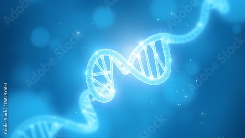 A glowing double helix DNA strand surrounded by ethereal blue healing energy.