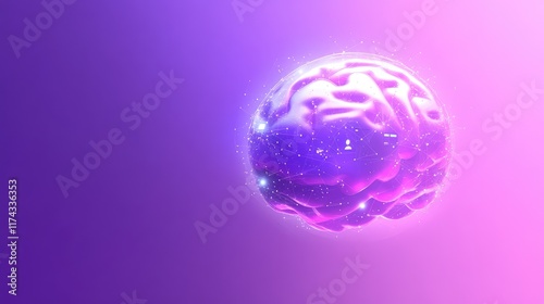 A glowing holographic digital brain symbolizing AI with interconnected business analytics icons floating on a clean gradient background. Ample copy space provided.