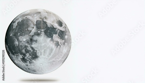 A glowing moon in the dark night sky, with Earth as a blue sphere in the background surrounded by stars and clouds, showing continents like America and Europe floating in space, white background