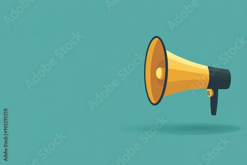 A golden megaphone with a black handle against a turquoise background