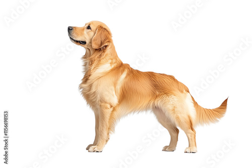 A golden retriever stands elegantly, showcasing its beautiful coat and confident posture.