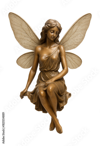 A graceful fairy pond figure with delicate wings, perfect for a home water feature.