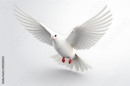 A graceful white dove soaring through the air with outstretched wings, symbolizing peace
