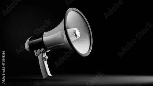 megaphone, loudspeaker, public, address, announcement, speech, protest, communication, black, white, grey, sound, voice, amplification, propaganda, message, publicity, campaign, broadcast, clarity, noise, powerful, volume, loud, speaker, projection, angled, isolated, three-dimensional, render, illustration, graphic, design, modern, technology, advocacy, action, information, news, media, audio, device