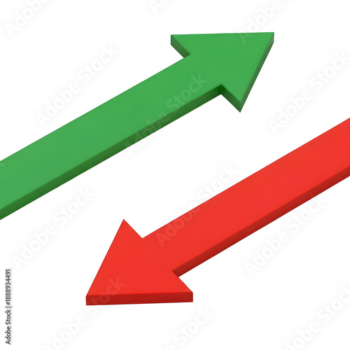 A green arrow pointing up and a red arrow pointing down on transparent background