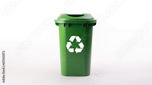 A Green recycle bin with recycle symbol isolated on white background. Generative Ai