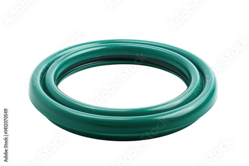 A green rubber ring on a white surface highlights its sleek design and texture isolated on transparent background