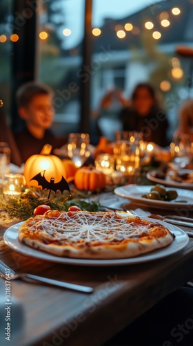 halloween, theme, pizza, night, top, spider's web, design, bat, shape, olive, scarey, tradition, spirit, puckered, dine, decoration, food, snack, atmosphere, plan, together, event, trick, children, contest, presentation, celebration, menu, magic, holiday, vibe, costume, enjoyment, skittish, style, get, laugh, cookery, party, fun, memory, creative, festive, dinner, joy, ghostly, creepy, activity, treat