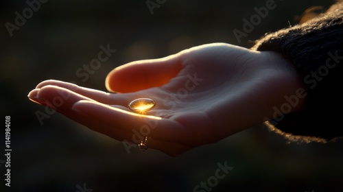 hand, palm, finger, skin, light, sun, glow, orb, sphere, round, small, object, sunset, sunrise, warmth, gold, yellow, bright, shiny, clear, transparent, glasses, crystal, precious, delicate, beauty, nature, peace, serenity, calm, hope, faith, spirituality, energy, power, life, miracle, tiny, detail, closeup, macro