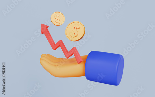 A hand with arrow up and coin, business money investment, economic growth, coin up, money growth concept