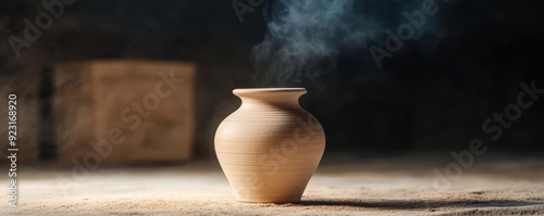 A handcrafted ceramic vase sits in a kiln, showcasing durable earthy tones and reflecting traditional pottery techniques.
