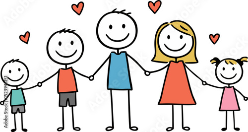 A happy family of five holding hands, showing unity.