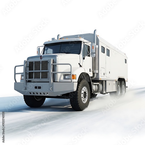 A heavy semi truck with a trailer for cargo delivery and freight transportation isolated on a white background as a big industrial vehicle