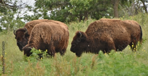 A herd of American bison (buffalo) in Nebraska on the Great Plains.