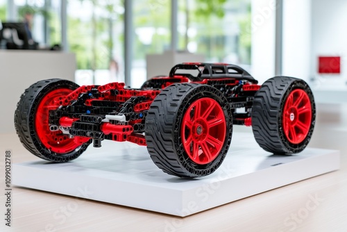 sport, car, axle, displayed, showroom, highlighting, its, lightweight, advanced, material