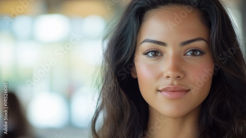 A Hispanic female employee. Working in an office. A female employee showing in an office. AI generated.
