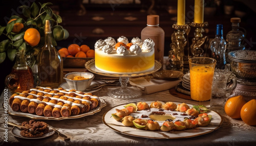 dessert, food, fruit, epicure, sweet food, decoration, chocolate, freshness, table, baked, homemade, indulgence, meal, celebration, sugar, wood, plate, nature, drink, orange, snack, variation, pumpkin, rustic, candy, refreshment, candle, honey, cooking, flower, closeup, small, crockery, lunch, indoor, halloween, slice, cream, culture, wine, cheesecake, lemon, bread, eating, plant