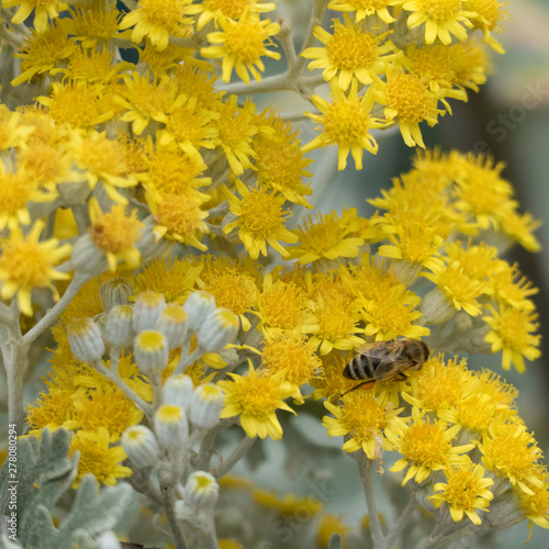 orange, honey bee, pollen, plant, yellow, nature, summer, insect, spring, garden, meadow, field, flora, macro, blossom, floral, closeup, bloom, inflorescence, vegetative, shrub, mediterranean, asteraceae, nectar, collecting, licking, flower, pollination, bee, blooming, environment, outdoors, wildlife, collection, collect, men at work, wing