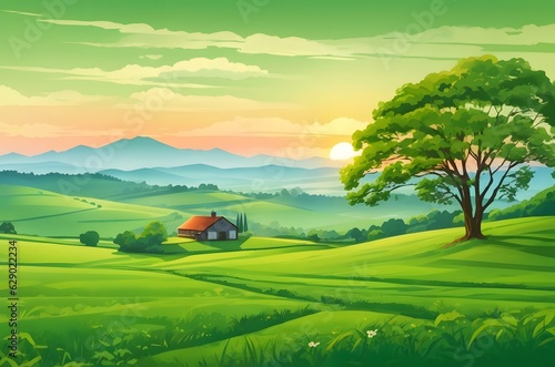 vector, background, design, illustration, green, landscape, nature, colourful, poster, scene, summer, blue, bright, land, field, dawn, rural, sky, view, fresh, garden, grass, meadow, sunrise, spring, crop, countryside, scenery, natural, mountain, agriculture, hill, day, country, ecology, tree, farmland, morning, farm, environment, harvest, scenic, sun, pasture, horizon, park, pine