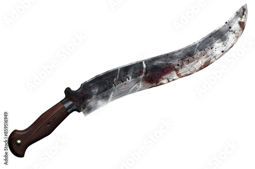 A huge old rusty knife with a machete-type wooden handle on a transparent background