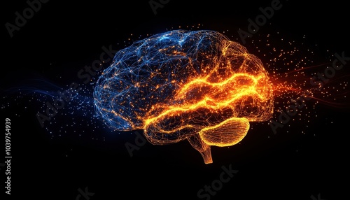 A human brain exploding in a burst of rainbow colors, illustrating the connection between creativity, cognitive overload, and mental well-being