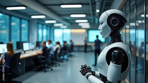 robot, android, office, modern, workplace, ai, artificial, intelligence, technology, future, work, employee, integration, automation, business