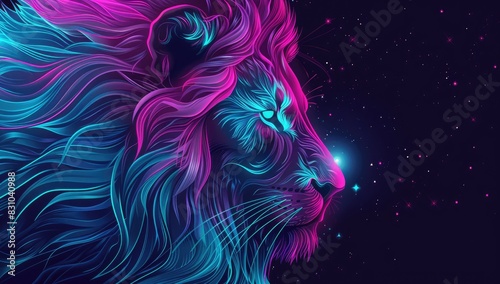 lion, neon, cosmic, illustration, star, space, hallucinogen, art, electric, bright, colourful, animal, head, abstract, vibrant, futuristic, glow, night, galaxy, aglow, creative, majestic, design, digital, fantasy, surreal, detailed, modern, visual