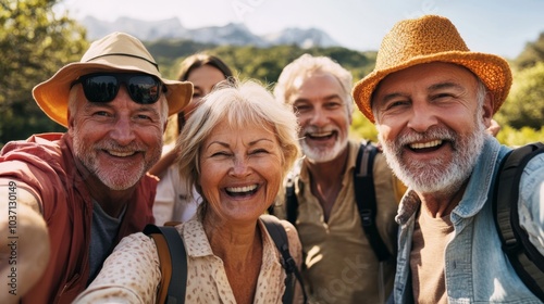 friends, happiness, adventure, senior, memory, affectionate, vitality, nostalgia, calmness, togetherness, human relationships, engagement, exploration, warmth, community, enjoyment, social, vibrant, laughter, relaxation, joy, journey, smile, connection, lively, hat, sunlight, companionship, mountain, landscape, scenic, fun, healthy, cheerful, celebration, selfie, wanderlust, nature, travel, beautiful