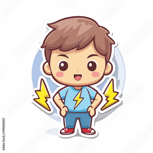 character, cartoon, boy, lightning, icon, sticker, vector, blue shirt, jean, red shoes, brown hair, white background, illustration, graphic, design, element, cute, playful, energetic, humorous, health, injury, concept, symbol, yellow, flash, electricity, pain, discomfort, expression, face, emotion, fun, colourful, vibrant, modern, trendy, children, children, teenage, emoticon, children, children, art, person, smile