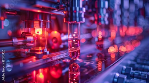 A lab with a red background and a glowing tube