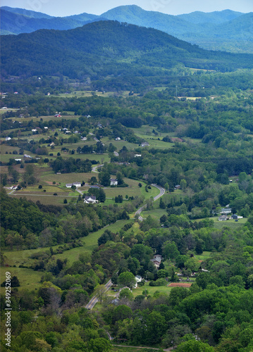a landscape photo of the Rockfish Gap Valley in Central Virginia on a spring day.