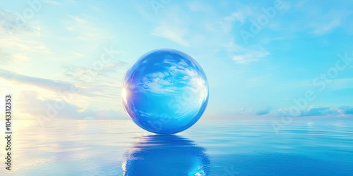 serene, imagination, sphere, globe, peaceful, fantasy, transparent, bubble, earth, large, setting, sunrise, horizon, refraction, round, crystal, floating, sunlight, ball, surface, distance, clear, light, ocean, abstract, sun, clean, hand, sunset, cloud, glasses, blue, concept, sky, circle, design, creative, vacation, water, bright, nature, sea, background, travel, summer, beach, beautiful, landscape