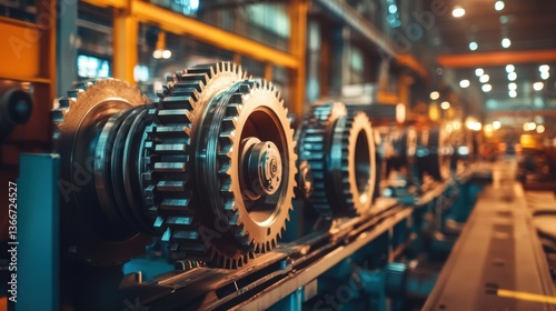 A large industrial gearbox with exposed rotating gears in motion.