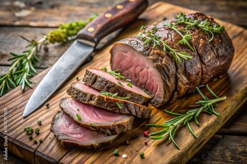 steak, meat, tenderloin, food, beef, sirloin, meal, bar-b-q, pepper, grilling, board, red, rare, dinner, fillet, cut, rosemary, medium, beefsteak, roast, wooden, cooked, table, filet, rib, knife, closeup, salt, epicure, juicy, bar-b-q, background, cookery, herb, fork, spice, ribeye, rustic, protein, black, wood, angus, delicious, sliced, ingredient, healthy, organic