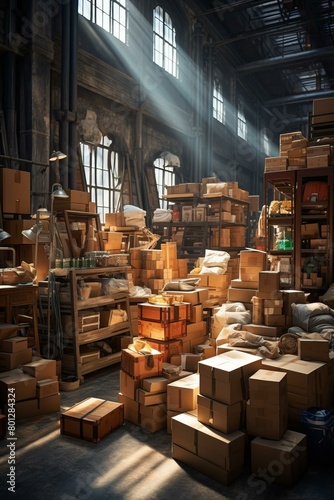 A large warehouse filled with boxes and other supplies