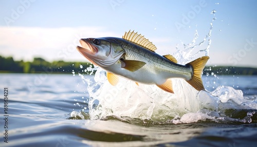 fish, leaping, splash, water, nature, wildlife, outdoors, summer, lake, river, aquatic, fresh water, fishing, beautiful, motion, powerful, energy, capture, moment, photo, scenic, high-coloured, bright, sunlight, greenery