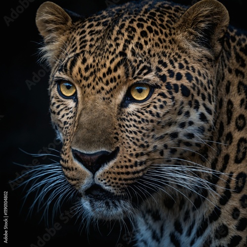 A leopard's eyes glowing in the darkness, its gaze piercing through the night like twin beacons of predatory hunger.